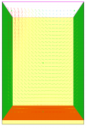 下面是一個(gè)示例,可以練習(xí)上述大部分選項(xiàng)。右側(cè)有一個(gè)供氣口,溫度為50.0 C。在底部,加熱器500 C通過(guò)對(duì)流和輻射提供熱量。在左側(cè),部分空氣被排出,表面溫度值為20 C。頂部是OPEN,正面和背面是INERT。 速度矢量如圖 3所示。