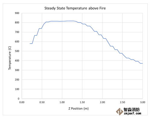 圖 11. 火上方穩(wěn)態(tài)溫度的線圖