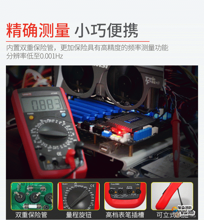 UT890系列全新一代手動量程數(shù)字萬用表。自動量程100mF大電容檔位,可快速測量音響功放,電源板等領(lǐng)域mF等級的大電容。該系列萬用表具有真有效值,可準確進行非正常交流信號的有效測量;全量程保護,萬用表在電阻檔測試時不會由于誤操作接入高壓而引起燒表。在電子,家電,電器維修工作中,您需要一款耐用、可靠且精確的數(shù)字萬用表。